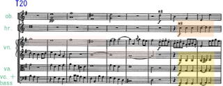 自分なりにランクを上げている曲で、Finaleのfugaに向けて、書かれている特徴と記載した。T27から f で 音量を上げていき、T27でhr.と低弦を含めて新たな旋律が登場する。ここまでどちらかといえばhr.は余り活躍してこなかった。T27で低弦とともにhr.が入り、あたかも打楽器が入るように音の厚みが加わるのが印象的。