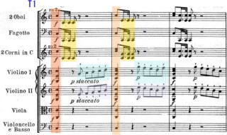 ハイドンは、かつて低弦に関して音量を補強したい場合、単に奏者の数を増やすのは好ましくない。むしろ、vc.+bass.+fg.の3名のユニゾンの方が、好ましいと発言した記憶がある。T84からの箇所は、低弦はユニゾンになっているが、クイケンの場合は、全ての奏者が1名ずつ。ユニゾンでの低弦の音色をハイドンが狙っていたのかもしれない。