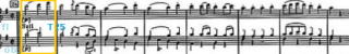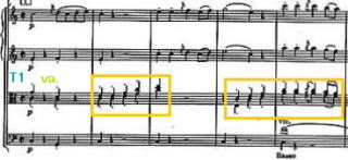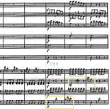 Menuetの主部でT40の低弦の部分。ここでは実音でvc.とbassがあわせている部分であるが、音色が独特な部分。サヴァリッシュの演奏では、低弦に厚みがあり少し不気味な雰囲気が良く出ている。