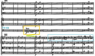 B ワルター盤では、Finaleでピラミッド上の低弦の厚みを記載をした。この演奏では全く逆の立場で、古楽器の特徴を生かして低弦も柔らかい雰囲気。