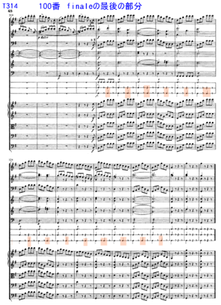 2017年4月27日 パイヤール指揮 イギリス室内管弦楽団のNo.100を聴取。No.94にも記載したが、主旋律を中心に流れるように進めていくのがパイヤールの特徴。Finaleのロンドソナタ形式でも同様。T46からの第2主題。ここでは、得てして低弦からvn.に引き継がれる主題を目立たせて、第2vn.とva.8部音符を目立たせないことが多い。