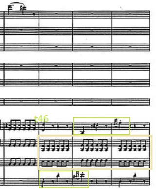 スコアをみると、打楽器群は、音の高さに変化がなく強弱のみ。すなわち他の楽器からすると、どの打楽器群はどの調性でも良い。T57ではc-mol の短調。しかしながら、最後はc-durでTuttiによる同じ楽器編成。打楽器は常に同じ音程ながら、それぞれの箇所は、短調と長調に違いで大きい。もし打楽器のみがこの箇所を演奏していたら。どの様に聴衆は感じるか?この楽章を聴いて、いつも思うことなのだが。音程に対しての人間の聴覚は、不思議な気がいつもする。