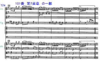 、2019年11月28日 100番 カール・リヒター(Karl Richter) ベルリン・フィルハーモニー管弦楽団を聴取。この曲の第1楽章はNo.102と同様に、複数でありながら共通した単一動機が活用され、練達の様に展開していく醍醐味があると思う。冒頭の序奏はテンポは、No.94と異なり普通。提示部のT35の部分。vc.とbass.が分離する部分していく箇所でも弦の厚みを生かして、この演奏でもよいポイントのひとつ。下記の R スラットキンのレビューに譜面あり。