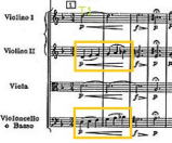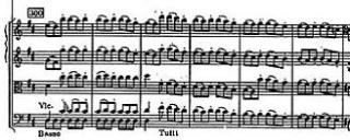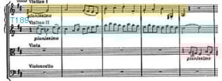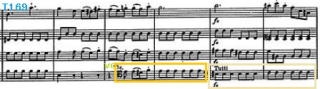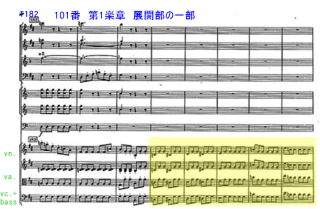 2016年8月13日 ブリュッヘンOrchestra of The Age of Enlightenment No101を聴取。FinaleT189からの弦4部による再現部でフーガ風に進行する個所。Bassを除く、管楽器を伴わないで、主旋律を変形しながら各パートが再現する個所。弦のパートが細かく聴き取れる。 |