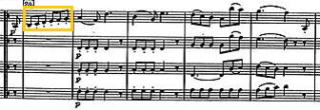 第3楽章のTrioの部分。もともとこの楽章は、ハイドンのMenuetで一番長いと思うが、このTrioも繰り返しがあるもののかなり長い。T121当たりで第一vn.がfで引く部分。T123からスラーを伴う柔らかい旋律に入る前の箇所。ここでは、fを強調しながら鋭く引いていると思った。