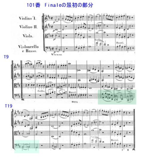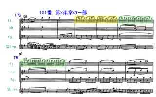 No.95の方は、vc.のsolo の箇所がある。それに対してNo.101の方はvc.のsolo はないが、菅楽器を中心としたsoloの箇所は多い。