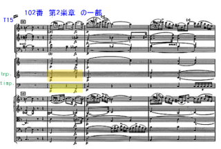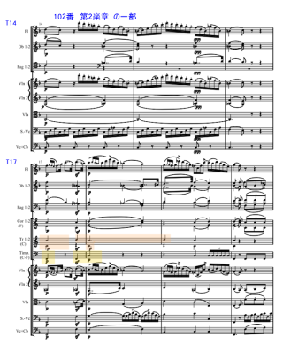 $B!!(BNo.96finale$B$G$O!"(Btimp.$B$N3hLv$r5-:\$7$?!#(BNo.102$B$NBh(B2$B3Z>O$G$bF1MM$K!"3hLv!#$3$NBh(B2$B3Z>O$O!"0lEY!"D0$$$?$@$1$G$O!"$3$N6J$NNI$5$,J,$+$jFq$$!#$9$J$o$A!"Ds<(It$G$O!"7+$jJV$75-9f$P$J$$$,!"$[$\F1$8MM$J7+$jJV$7$,$"$kMM$KD0$->!$A!#(BT2$B$+$i(Bvc.$B$N(Bsolo$B$,3hLv$9$k$3$H$b$"$j!"$D$$$D$$893Z4o$NJ}$K<*$,F~$C$F$7$^$&!#$7$+$7$=$l$P$+$j$G$J$/!"7+$jJV$7$,$"$k#22s$a$O!"(Btimp.$B$H(Btrp$B!#(Brrp$B!"(Bhr.$B$,(BT47$B$+$iF~$k!#%W%l%t%#%s$N1iAU$O!"$3$N(BT47$B$N?7$?$KDI2C$GEP>l$9$k$3$l$i$N3Z4o$r;]$/I=8=!#(B