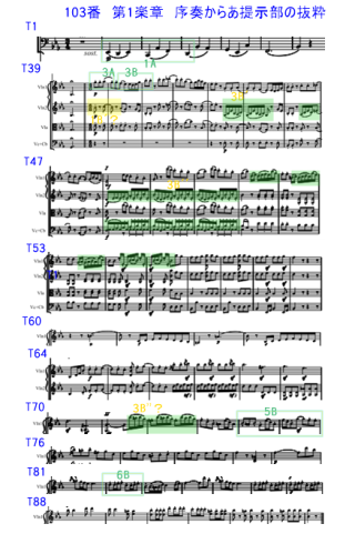 No.104にもふれたが序奏と第1主題を含めた関連性についてもNo.103にも記載がある。序奏の低弦の動機は、関連性が余りないよう感じるかもしれない。