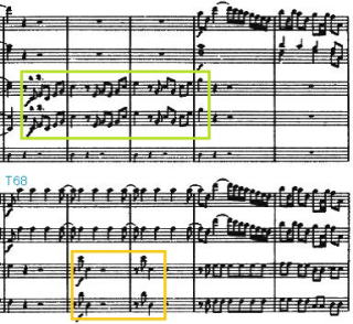 下記のシュワルツ スコットランド室内管弦楽団 に譜例あり。