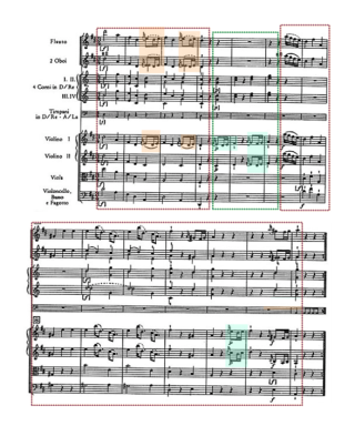ハイドンは初期から中期にかけては限られた聴衆に対して、楽器の種類や奏者数が限られていた中での工夫が必要だった。同じスタイルの交響曲は続かない。中期以降の交響曲は聴取がどのように反応するかも、作曲者の意図に含まれてくる。ザロモンセットは、聴衆の反応をみながら、交響曲を随時、1曲ずつ更新しながら作曲をしていくようなスタイルだった。モーツァルトのこの部分の引用にも関連する。 下記のサイトに モーツァルト No.41の交響曲などを含めた 記載がある。原文にもあたってみたなど苦労をされたようだが、結論は得られていな雰囲気。
