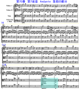 それに対して第2楽章 Andannte は弦楽器のみ。No.2と違って緩徐楽章では音色に変化が富み、低弦はピチカートで開始。しかし一部の箇所は、弓で弾く部分もある。珍しくva.の分奏もある。この楽章全体を通して、柔らかい音量と音色が中心になっている中、音色の微妙なニュアンスもうまく表現。