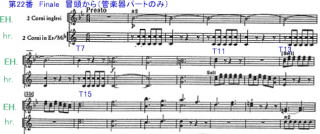 一方、Finaleは管楽器は、控えめに回っている。T2からのhr.は音量を落とし、弦楽器を支えている。しかしその後に続いて、管楽器の hr.