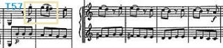 2つのvn.パートの音程の差は、第3楽章の冒頭のFinaleも同様。冒頭から3度離れて主題が登場するが、その後T4からvn.は同じ音程のユニゾンで f の旋律との対比が目立つ。このFinaleは前半と後半の繰り返しは忠実に守るが、テンポは中庸なファイ盤でも113小節。演奏時間も3:45しかない。繰り返しがありながらも、シンコペーションのリズムを伴い旋律も取り入れた効果があり、力強い締めくくりがある。しかしテンポの変化、微妙な旋律の装飾はファイでも、他の曲ほど目立たないと思った |