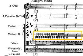 2019年2月14日 エルンスト・メルツェンドルファー ウィーン室内管弦楽団 14番を聴取。過去のファイ盤では第2vn.の16分音符の切れの良い旋律を記載した。こちらは対向配置でないため不明瞭。(譜面あり)