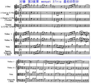 2019年2月23日 エルンスト・メルツェンドルファー ウィーン室内管弦楽団 32番を聴取。ハイドンの交響曲は最初の出だしの動機で決まると思う。No.25で長い序奏を経た後、主題の切れ(vn.の16分音符の短い動機)がob.に消されて不明瞭なことを記載した。この曲は序奏はないが、冒頭から旋律が一斉に登場する。今後の展開していくのは、主に8分音符を中心とした細かい箇所が多い。このため冒頭の2つのvn.の8分音符の切れがポイントになると思っている。No.25では、こういった箇所がob.に埋もれてしまって聴こえ難いと予測していた。しかしこの曲では、vn.の4分音符の動機が強調されているので分かりやすい。trp.が時折、補強的に入るが余り目立たないものの違和感はなし。