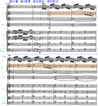 2017年4月1日T.ファイ No.41を聴取。自分のコメントでは、この時期としては生前から人気にあった曲のひとつと記載した。数年後に作曲された一つ後のNo.42と比較してみると面白い。井上著も「古典派の典型的な曲」と記述されているように、当時の聴衆にも分かりやすいと思う。分かりやすいとは言え、この曲もいたるところに仕掛けと面白さが散りばめられている。
