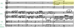 疾風怒濤期の緩徐楽章は、弦楽器が中心に展開されることが多い。初期の頃と異なり全く感が入ることはないが、その分、僅かに入る箇所が微妙な聴き所になる。T37からob.が初めに登場する箇所。ここでもob.はあくまで控えになっている。