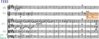 スコアの指示:提示部(繰り返し)→展開部+再現部(T213までcoda?を含む)繰り返し