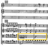弦楽器の中でハイドンはVa.のパートを余り重視をせず、低弦と同じユニゾンの旋律個所が多い。しかしT39からの部分で16分音符のトレモロでva.が和音を刻む。この部分は、ピノック盤では余り聴き取りにくい。一方、ヴァイル盤は、低弦と異なりvn.パートに負けず、響きを高めている。各パートの分離感も聴き所だが、この個所一つをとっても印象的。聴き通してきた中と同様、あらためてヴァイル盤の良さを再認識。 |