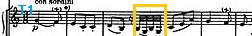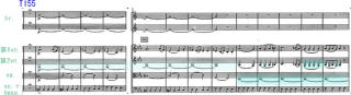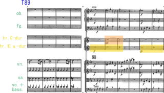 またhr.の配置も特徴的。第1〜3楽章では余り意識をしなかったが。スコアではhr.は第1.4楽章はCとEsの調を変えた2本のhr.になっている。第1楽章では、この2本の差が余り分からなかった。しかしFinaleでは第2奏者 Es調の方は、右側に位置。それに対してC調の方は左側に位置し、分かれている。(譜面 Finale T93-94の部分)ツで2本の奏者が音程を変えるところなどは広がって迫力がある。