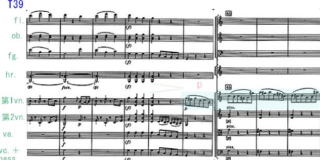 ところが映像で見ると、最初から第2楽章は弱音器を2つのvn.は外しているようだ。T98からT108までの間で弱音器を外す必要がない。このためT99からそのままvn.は特に弱音器使用することもなくT108の強音に入っていく。(下記の譜例のT108から)
