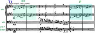 最後にこの終始を持ってくるために、冒頭は明るい雰囲気を登場させる。スコアをみると、前半の弦楽器のみの部分で、最初の低弦のパートは、最後に終始する低音域まで下がらない。提示部のT43から最初に登場し、暗い雰囲気に向けてのT56からのob.の登場に向かっていく。低域のパートを中心に見てみると、T56に向かって次第に音域が下がっていくことに伴い、ち密な工夫がされていると思う。特にこの演奏ではピラミッド型の低音が比較的、強調録音されているので印象的。
