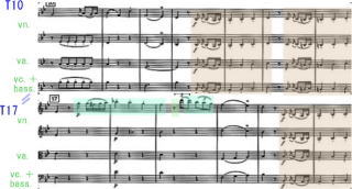 第2楽章の変奏曲。第1vn.のテーマから、変奏曲に続いていく。管楽器のsoloの箇所が多く、弦楽器とのバランスをとるところも聴き所。第3または第4変奏のT61からの部分。2人のob.とfg.が入る箇所。vn.は抑えて、低弦とfg.が明瞭に入っている。前の2曲に比べると、レンジが多少狭いようだが、バランスは前の2曲とも同様に良い雰囲気。