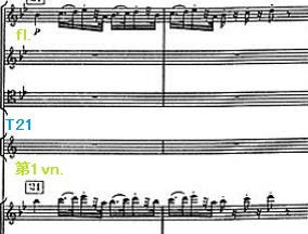 その後T21の部分では、第1vn.が高い旋律を受け持ち、fl.は、1オクターブ低くユニゾンで吹いている。この曲以外も1オクターブ低くfl.が、受け持つ箇所があるかもしれない。しかし今までは、それほど気が付かない箇所。得てして低い音域のfl.は、弦楽器に埋もれてしまうことが多い。しかしメルツェンドルファーの演奏では、fl.がユニゾンで旨く聴こえている。管楽器のsoloと弦楽器のユニゾンの箇所は、どこまで聞かせて バランスを取るのかが難しい。この部分でもvc.とbass.が分離しているのも注目。