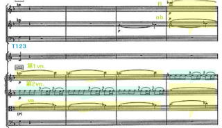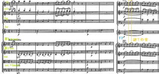 しかし、テンコ盛りのようなこの楽章でも、ダントーネは、微妙な味付けをしている。従来までの演奏では、T34の経過部の動機。ここでは、2つのvn.パートはトリルの指定になっている。今までの演奏では、このトリルを忠実に守っていた。それに対してダントーネの演奏は、トリルを忠実に守らず、ごく僅かではあるが、前半はテヌートのようにトリルを用いていない。このため、この旋律が今までの演奏家と比べて、とても浮き出ている。しかもこのT34の旋律は、その後の展開部、再現部でも省略されることなく、微妙に形を変えながら登場する。細かい解釈の一つとして興味深い。 |