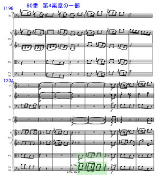 こちらは一方 va.は1名減って3名。ピッチは430hzと記載あり。この No.79以降は、fg,.が特に活躍する箇所が多い。No.88のfinaleなどはその典型。この曲に関しても、既にfg.のsolo自体の箇所は少ないが、弦とのユニゾンの箇所が多いのが聴き所のひとつ。