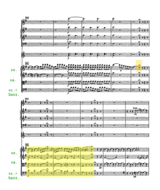 第1楽章の第1主題と経過部での低弦vc.とbassが分離 |