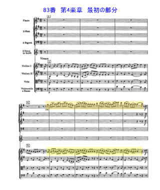 No.83は自筆楽譜が存在し、作曲者が最初に意図している曲のイメージは、決まっていたかもしれない。中野著「ハイドン復活」の中で、No.83の第2楽章の冒頭の主題で、当時の出版された譜例が掲載されている。最終的には自筆楽譜が存在していたが、出版された譜例された譜例は、自筆楽譜とは異なる例が記載されている。作曲者自身は、オリジナルの自筆楽譜はその後も手元で所有していたと思う。作曲された時から写譜屋に回って行き、写譜屋の転記の時に自筆楽譜とは異なる方法に代わってしまう場合がある。出版をさらに重ねていくに従い、さらにますまずオリジナルと変わってしまう場合もある。 IMSLPからダウンロードした手元の楽譜でも同じことも考えられる。