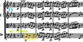 冒頭の主題が弦のみのユニゾンで提示されるが、vc.とBassの存在も大きい。中期の頃は、vc.とbassの分離は少ないが、ここでは必要に応じて分離。この録音ではBassは、右側にvc.と分かれて録音されている。オクターブで進行する低弦のパートと分離が、この録音でも良く分かる。第2変奏のT23など。低弦は主旋律を演奏する箇所もあるが、独自の動きも時折ある。