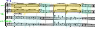 一方、ファイの演奏は、ここでかなりテンポを落としてびっくりさせる。第2変奏まで明るい音色だったfl.などの管楽器はこの部分は全く使用せず。T44からの第2vn.(対向配置で明瞭にわかるのもメリット)から開始する短調の旋律。繰り返しと経過部を挟みT72までかなり長く続く。第4変奏の長調の冒頭主題がfl.ともに回帰してきて、明るい音色と、見事に対比されている。 |