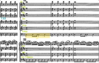 T22から第1と2vn.でシンコペーションの旋律が登場する。ここで、もう少し引き立てたいところ。バレンボイムの演奏では、それほど目立たず。Finaleも適宜、TIMP.が活躍したいところだが、この演奏では、それほど目立たないのが少し残念。 |