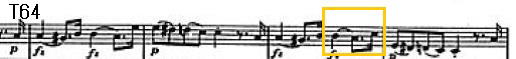 第1楽章T64からの第2主題。T64-66の最初の旋律は、従来まで聴いたものと同じ装飾なし。T67-69は装飾を加えている。同じ様な旋律が続くので、提示部から装飾を加えて短い第2主題の存在のアクセントを高めているか? 展開部、再現部でこの主題は変形等して登場するが、装飾を加える方法は同じ。