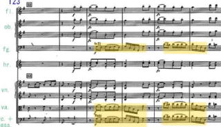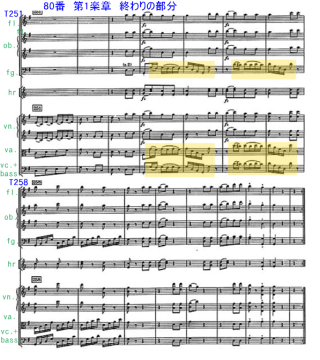 2016年7月22日 ブリュッヘンOrchestra of The Age of Enlightenment No88を聴取。FinaleのT191から最後の部分。普段は、2つのvn.パートが、分かれて聞こえ勝ち。しかし最後まで、2つのパートがだが、同じ旋律を引いて、締めくくるのが良く分かる。 |