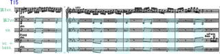 2015年1月3日 2015年1月4日 G.ヘルヴィッヒを聴取。第1楽章は比較的、速いテンポ。第2楽章T38の低弦がfのトリルで入る。再現部のvn.soloのT80と対照的。刻むようなリズムが中心の中で、長音符のトリルが目立つ。 |