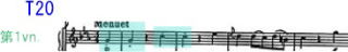 第1楽章の冒頭 Tuitti の短調の主題。これに続き、T21の経過部から長調 (C-dur?) に転じる部分。 調性が、がらりと変わり多くの指揮者は f の記載から8分音符(3連符)低弦も、鋭く演奏するかもしれない。しかし クイケン の演奏では、この低弦の旋律が、少し柔らかく演奏している。その分、小結尾や展開部での類似箇所で、低弦の旋律が力強く演奏されるので、旨く対比されていると思う。