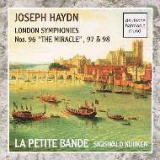 この様な演奏スタイルは、初めて聴いた。第1楽章の提示部と再現部で、作曲者は主題の旋律で調性が同じあるいは、類似の調でも、楽器編成が異なることで、微妙な変化を加えている。たとえば、No.97の第1楽章の第2主題。提示部は第1vn.のみだが、再現部は第1vn.とob.がユニゾンで登場するなど。一方、第3楽章のMenuetは、単純な繰り返しなので、旋律や調性の変化のない繰り返し。その様な中でも、如何にも繰り返しを忠実に再現しても興味が尽きないように演奏するホグウッドの演奏にはびっくりする。パリセットのNo.96などは、timp.が随所で活躍する。ホグウッドはパリセットを録音していないかもしれないが、もしこの様な解釈で演奏したものがあれば興味深い。 |