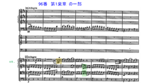 2019年5月20日 エルンスト・メルツェンドルファー ウィーン室内管弦楽団 96番を聴取。No.95ほどではないが、録音でダイナミックレンジが、やや狭い。No.92でも触れた、各パートの動きがわかり難い箇所がある。第1楽章 提示部 小結尾のT101から、第2vn.以下は短い動機で提示する。特に低弦はvc.とbass.の分離があるが、vc.の音が不明瞭。