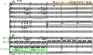 2015年1月10日 2015年1月10日 G.ヘルヴィッヒを聴取。第1楽章は比較的、速いテンポ。第2楽章T38の低弦がfのトリルで入る。再現部のvn.soloのT80と対照的。刻むようなリズムが中心の中で、長音符のトリルが目立つ。