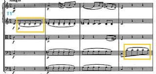 Finale coda T307のフェルマータの部分。ここで第1vn.の即興の旋律が入る。ここまで聴き通してきた中で、即興の旋律がなかったので、意外な感じ。 |