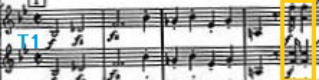 T71とT73の動機は頻繁ではないが、その後も随所に登場する。最後の部分も、少し動機は異なるが、T312~315の部分でも2つのvn.は4分音符で弾いている。T317からはスコアでは打楽器のtimp.はトリルではない。しかしこの演奏ではトリルで通している。Timp.のパートは目立っているのはもちろんだが。このトリルの動機は一つ前のT312からのvn.のパートを引き続いている役割に聞こえる。