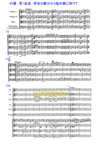 和声の語源や意味について私は詳しいことは分からないが。しかし少なくとも、序奏は短調でテンポが遅い。このため序奏の動機は後から続く主題とは大きく対比をさせている効果があると思う。スコアをみると、序奏は弦楽器のみのユニゾンで演奏される。管楽器は入らない。T16からのAllegroの演奏は、まだ管楽器は入らない。弦楽器のユニゾンのまま。T27から第1vn.の旋律に1オクターブ上で初めてob.が入る。