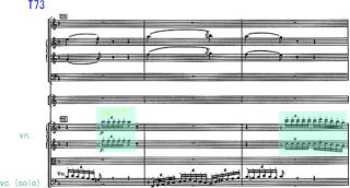 Cmb.以外にvn.とvc.のsoloも入る。第2楽章のT73の部分。(下記のブログに譜面あり)
