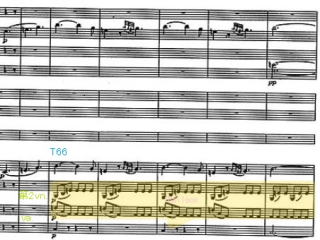 第2楽章の終わりの方の部分。T72でいったん半終始し、vc.のsoloになる部分。この後の部分でもともとの管楽器んそsoloの箇所に加えて、2つのvn.はsoloになっているようだ。