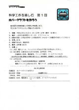 | 2016(平成28)年2月7日(日曜)9:30〜11:00 | 科学と工作 3 | 生涯学習センター | 静電気のおもちゃの工作 参加費:3300円 |