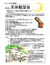 | 2017(平成29)年10月7 日(土曜)18 :30〜20:30 | 秋の天体観測 第8回 天体観測会 | 生涯学習センター | 参加費:無料 | チラシはクリック 雨天のため中止 | |