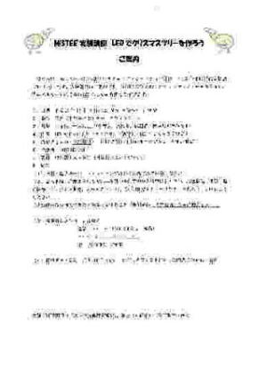 | 2009年12月 5日 | LEDの実験工作講座 LEDでクリスマスツリーを作ろう」 | 三次市生涯学習センター | 過去の活動のページに当日の様子について、記載をしています。